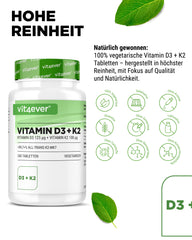 Vitamin D3 + K2 hochdosiert mit 5000 IE D3 und 100 µg K2 (MK7, >99% All-Trans) aus Premium-Rohstoffen in optimaler Kombination